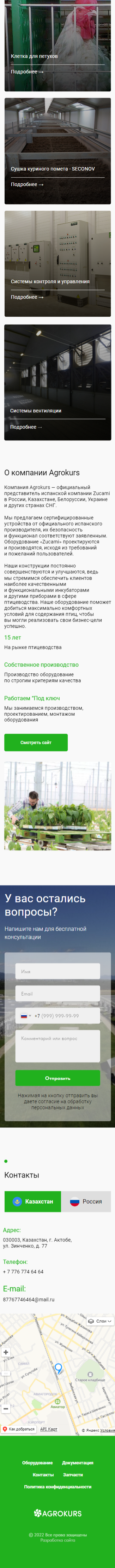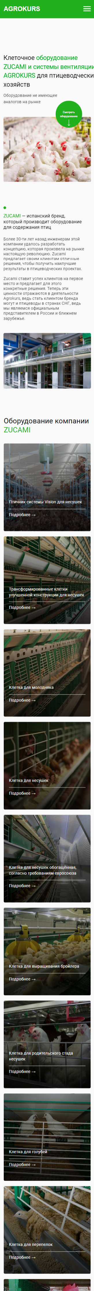 Задача: Разработать сайт для компании, которая занимается поставкой оборудования Zucami для птицеводческих ферм в России и Казахстане. Показать каталог продукции, с возможность оставить заявку для дальнейшего обсуждения поставки.