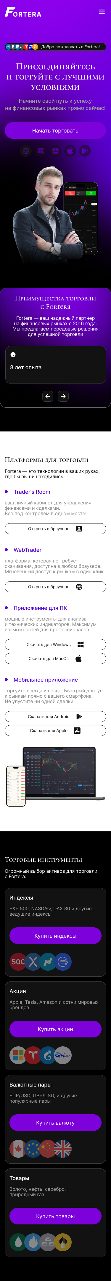 Задача: Разработать интерфейс многостраничного сайта для брокера, с возможностью регистрации в платформе.