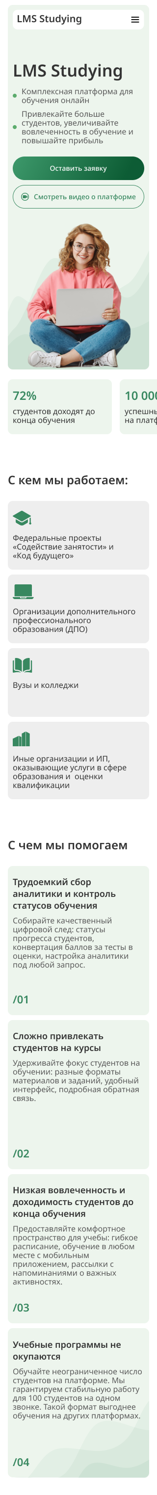 Задача: Разработать интерфейс лендинга для обучающей платформы, с возможность зарегистрироваться на платформе. Рассказать о преимуществах платформы.